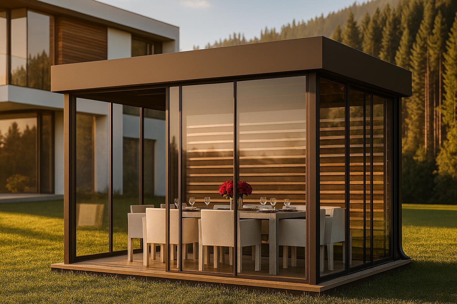 Carcasă metalică cu dimensiunile 5.0 × 3.0 m, prevăzută cu acoperiș înclinat